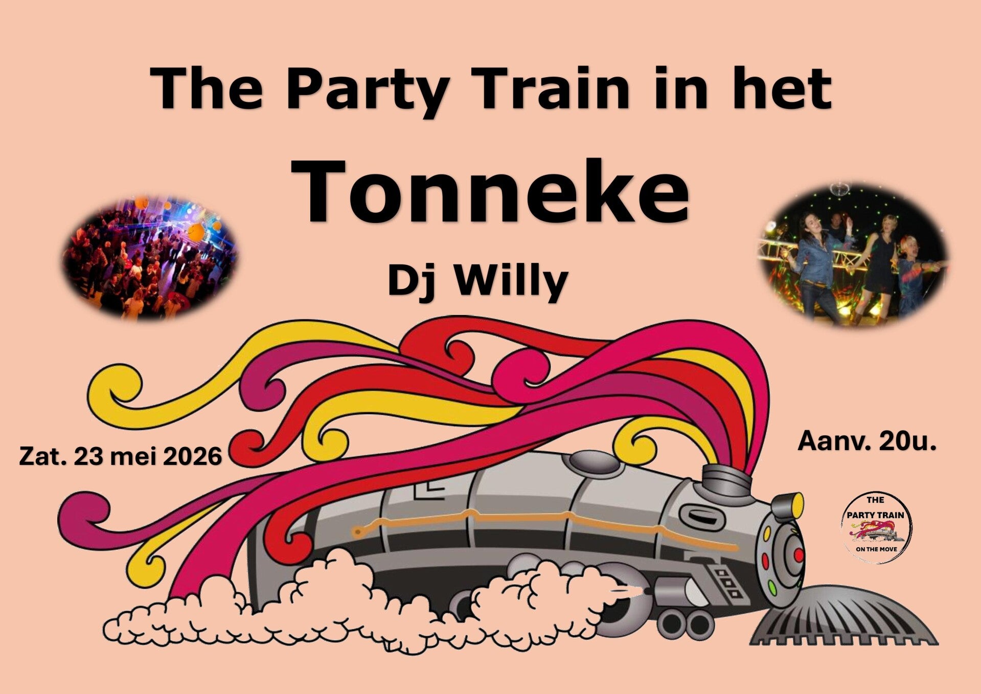 De "Party Train on the move" staat garant voor geslaagd feest. Steeds de beste Dj's die ervaring hebben in het creëren van de perfecte beats, U kunt rekenen op een avond vol dans en plezier.